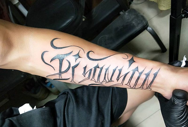 当前位置: 首页 >新疆巴音郭楞蒙古自治州纹身店-鬼斧·tattoo·刺青纹身图案>私人订制 花体 姓名纹身图片_手臂花体字私人订制纹身图案