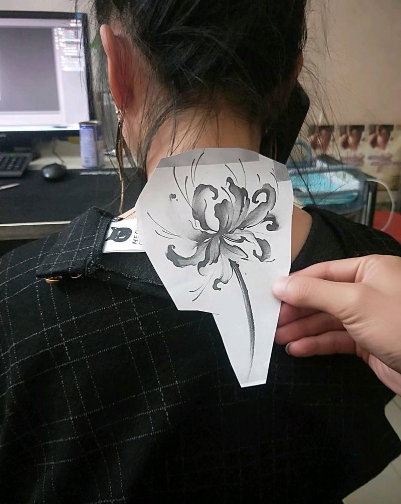 水彩彼岸花纹身图片_颈部水彩纹身图案