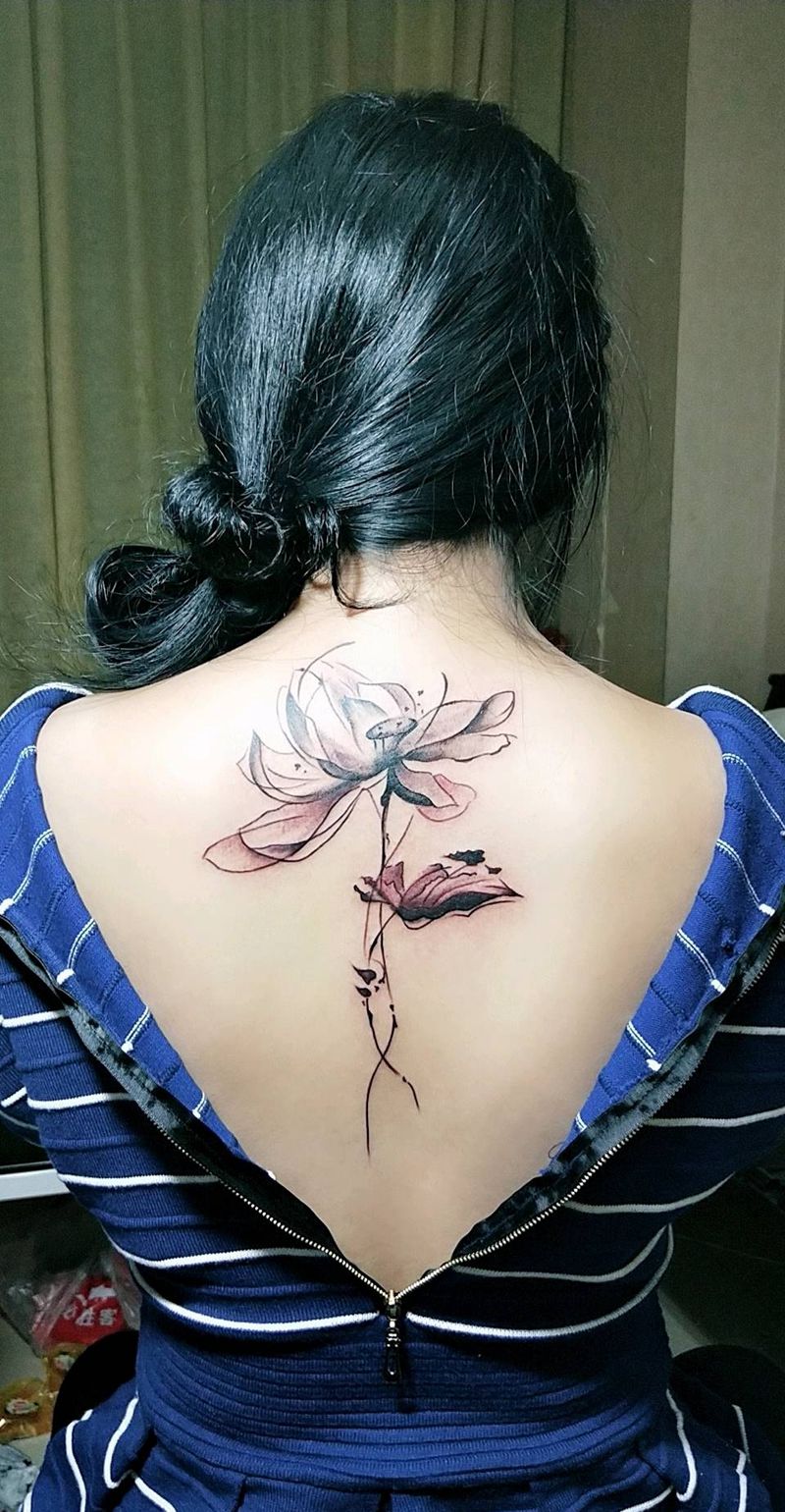 当前位置: 首页 >新疆巴音郭楞蒙古自治州纹身店-鬼斧·tattoo·刺青纹身图案>荷花纹身图片_背部水墨纹身图案