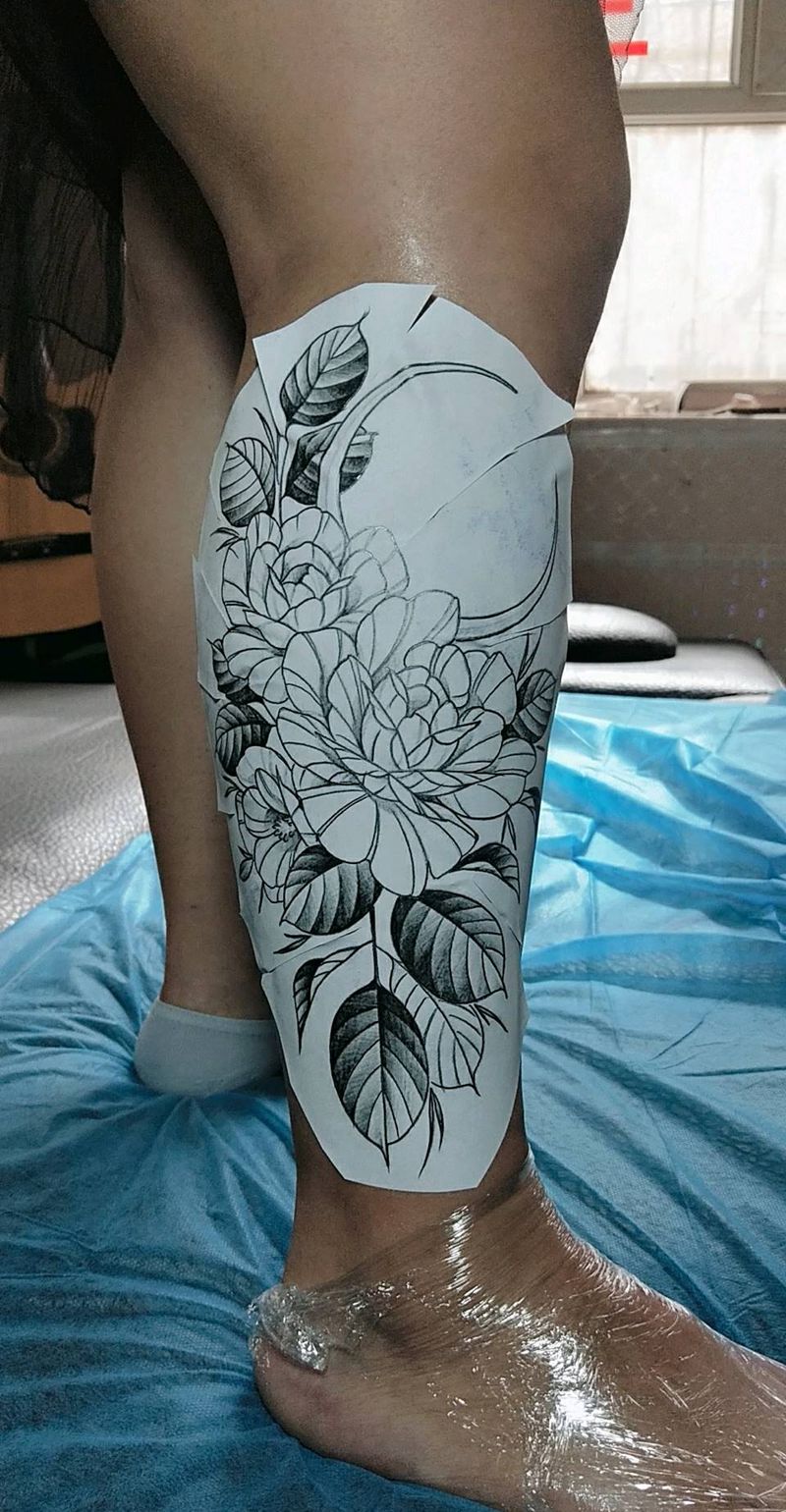 素花 半成品 下次继续纹身图片_腿部素花纹身图案