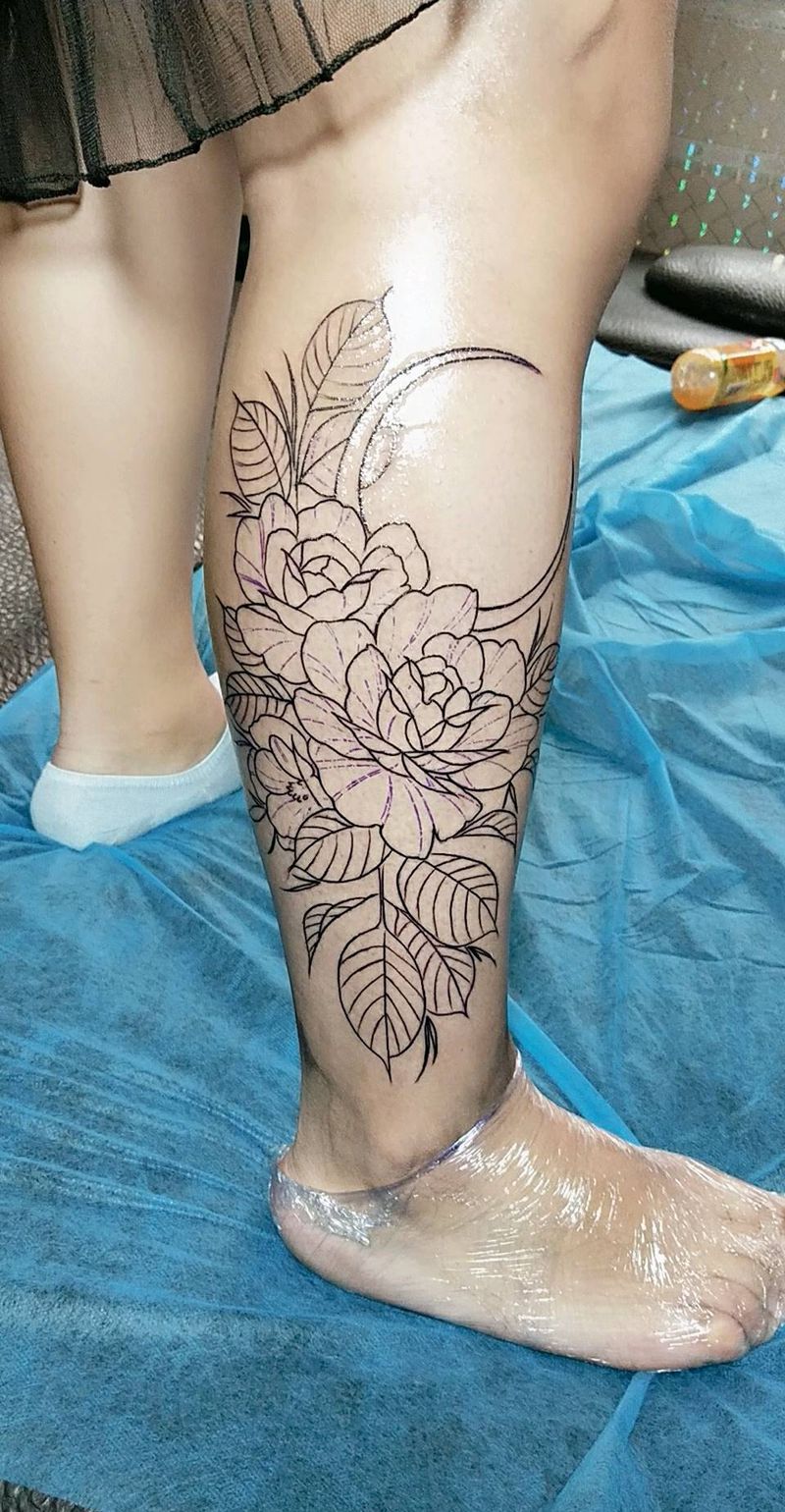 素花 半成品 下次继续纹身图片_腿部素花纹身图案