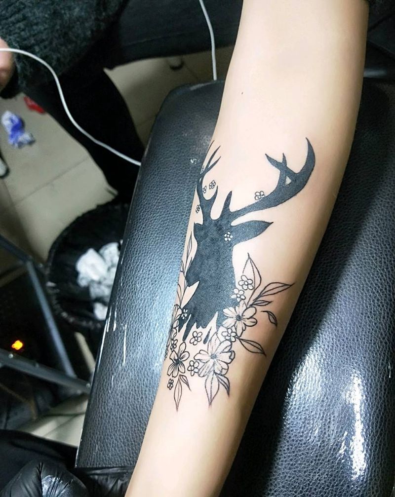 当前位置: 首页 >新疆巴音郭楞蒙古自治州纹身店-鬼斧·tattoo·刺青纹身图案>鹿纹身图片_手臂欧美纹身图案
