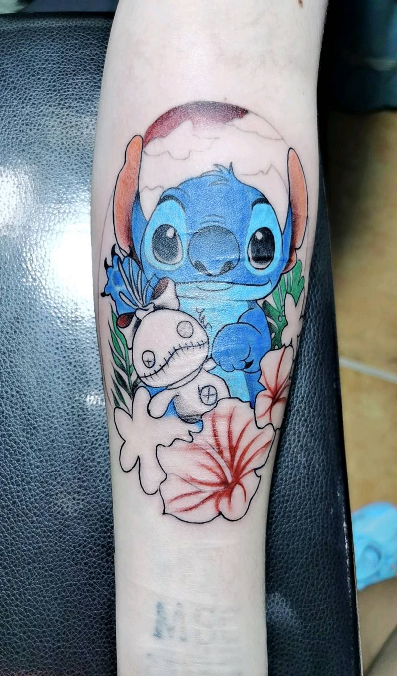 疤痕遮盖 史迪仔半成品纹身图片_手臂New School纹身图案