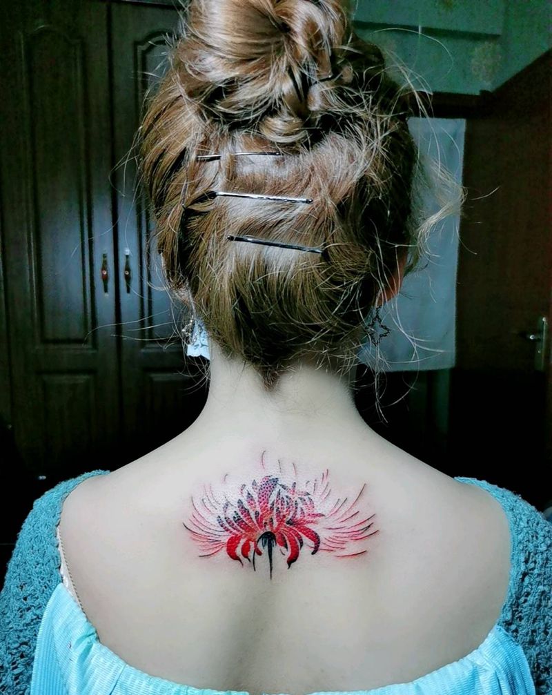 当前位置: 首页 >新疆巴音郭楞蒙古自治州纹身店-鬼斧·tattoo·刺青纹身图案>彼岸花纹身图片_背部水彩纹身图案