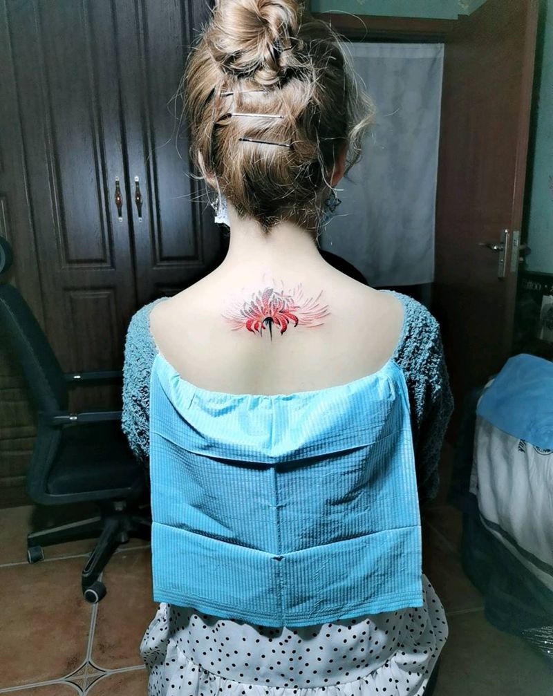 彼岸花纹身图片_背部水彩纹身图案