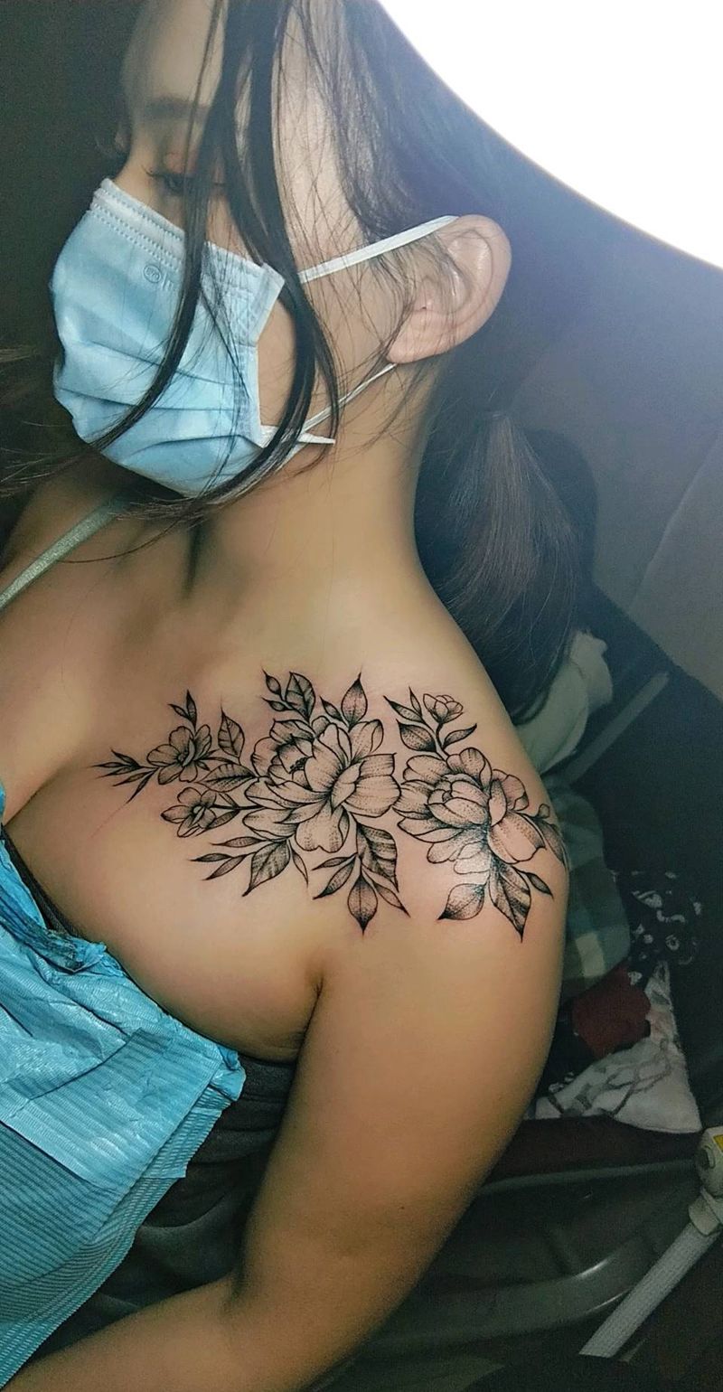 • 女性大花胸纹身_43张霸气漂亮的女性大花胸纹身图案作品
