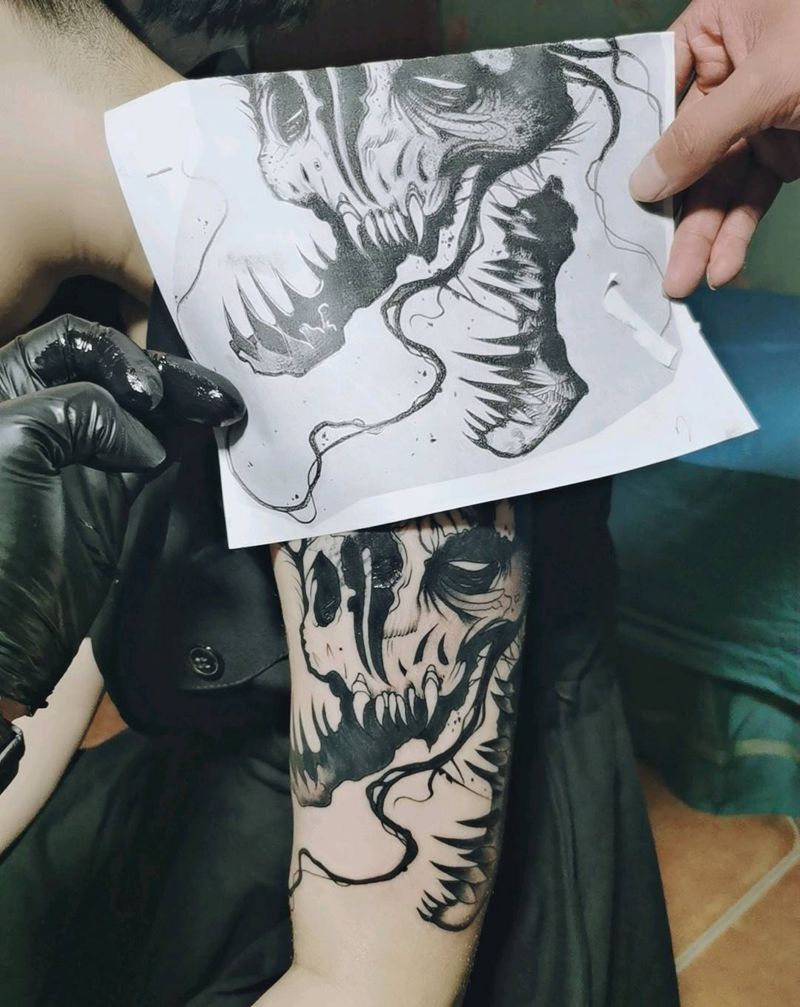 暗黑 遮盖半成品纹身图片_手臂暗黑纹身图案