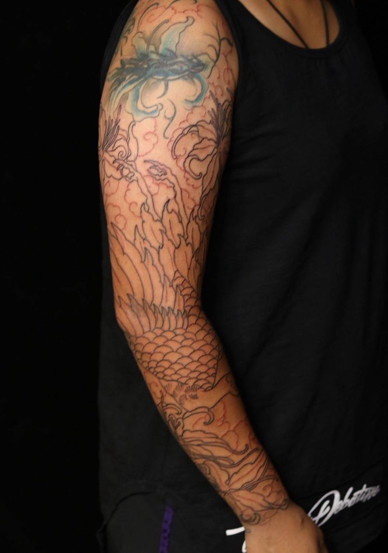 当前位置: 首页 >新疆哈密地区纹身店-纹途杨鹿Tattoo纹身图案>鹤花臂进度纹身图片