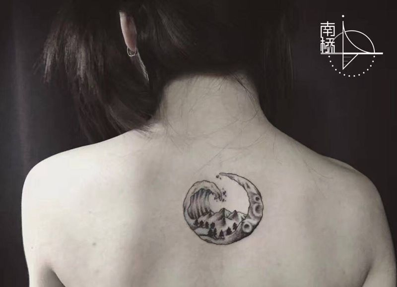 月球未来的样子?纹身图片_成品颈部清新纹身图案