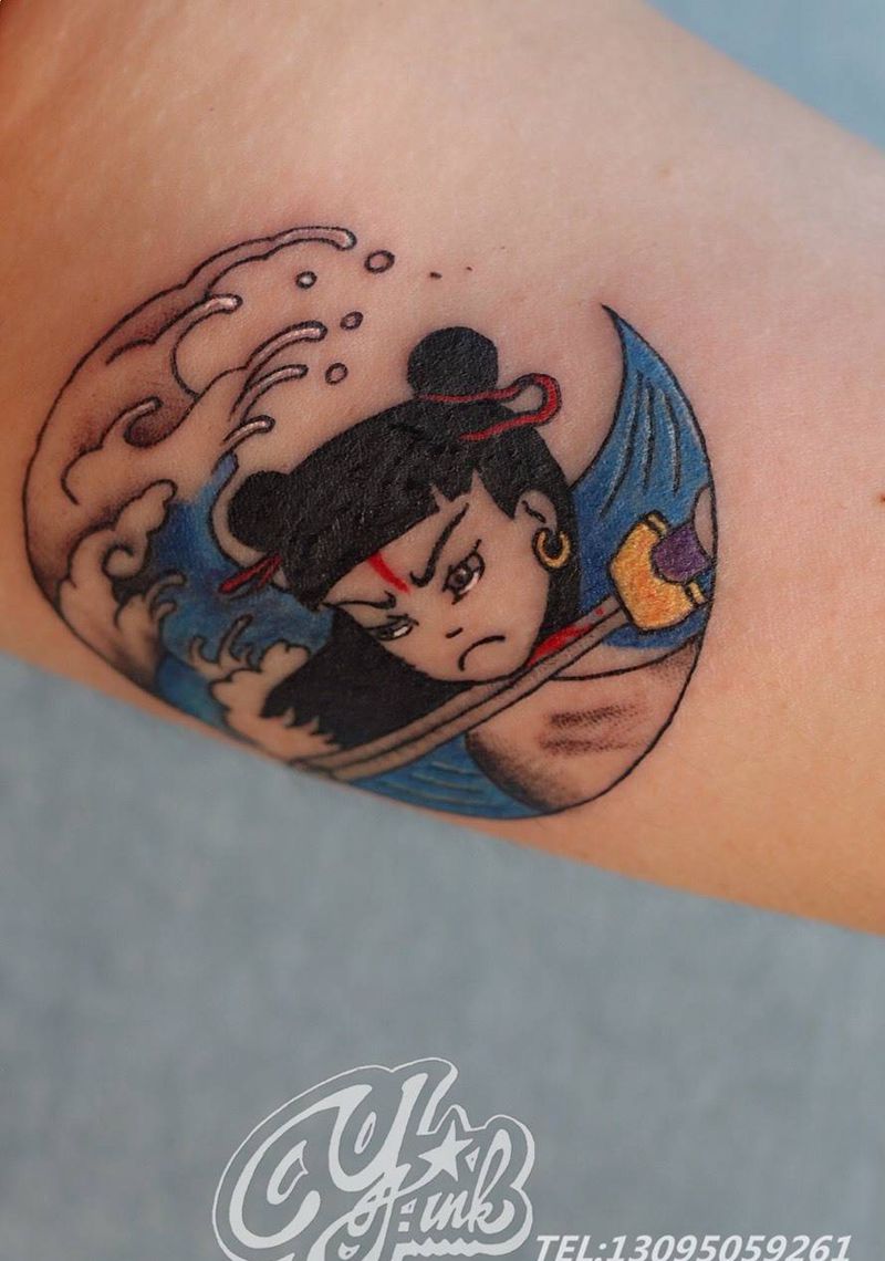 当前位置: 首页 >新疆昌吉自治州纹身店-仰吉刺青纹身图案>痛仰哪吒纹身图片_成品手臂人物纹身图案