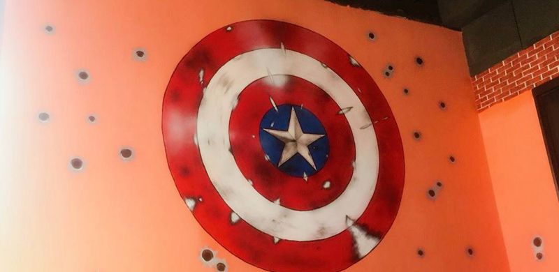 墙绘美队战损盾牌纹身图片_插画纹身图案