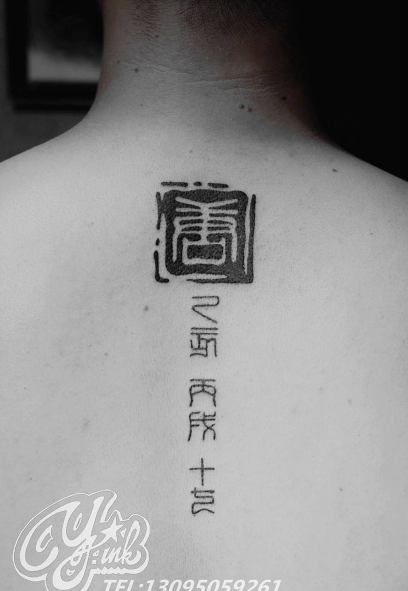 当前位置: 首页 >新疆昌吉自治州纹身店-仰吉刺青纹身图案>中国风纹身图片_成品背部传统字符纹身图案