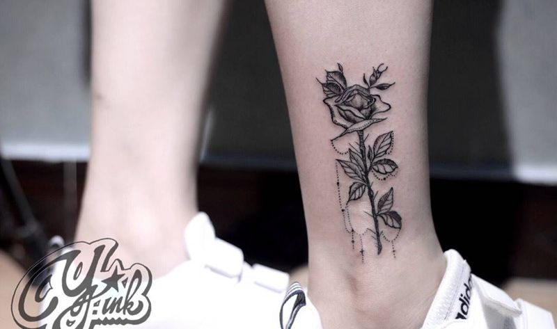 当前位置: 首页 >新疆昌吉自治州纹身店-仰吉刺青纹身图案>玫瑰纹身图片_成品腿部清新欧美植物纹身图案