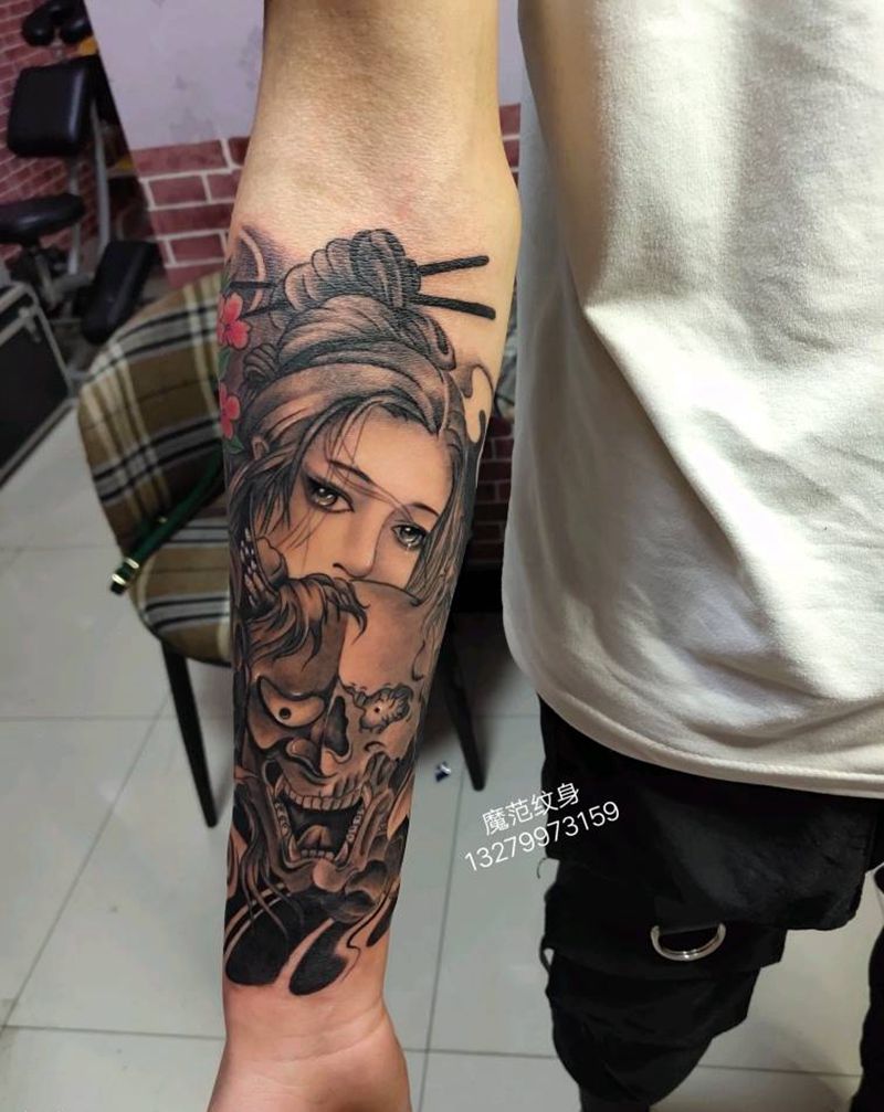 当前位置: 首页 >新疆阿克苏地区纹身店-魔范纹身师工作室纹身图案>落泪艺妓纹身图片_手臂腿部新传统艺妓纹身图案