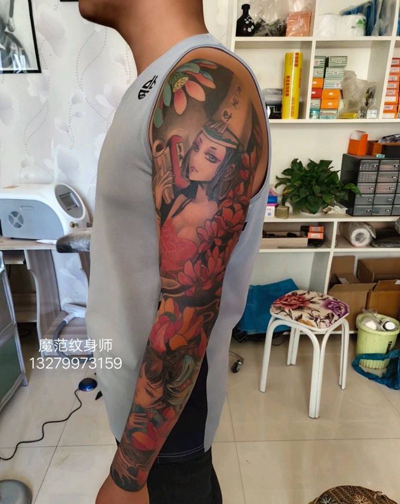 当前位置: 首页 >新疆阿克苏地区纹身店-魔范纹身师工作室纹身图案>不良人白无常花臂纹身图片_手臂肩部新传统人物纹身图案