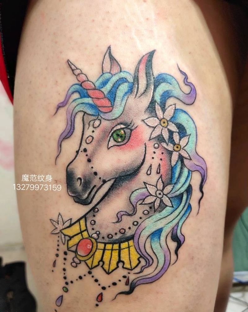 当前位置: 首页 >新疆阿克苏地区纹身店-魔范纹身师工作室纹身图案>独角兽纹身图片_手臂臀部新传统纹身图案
