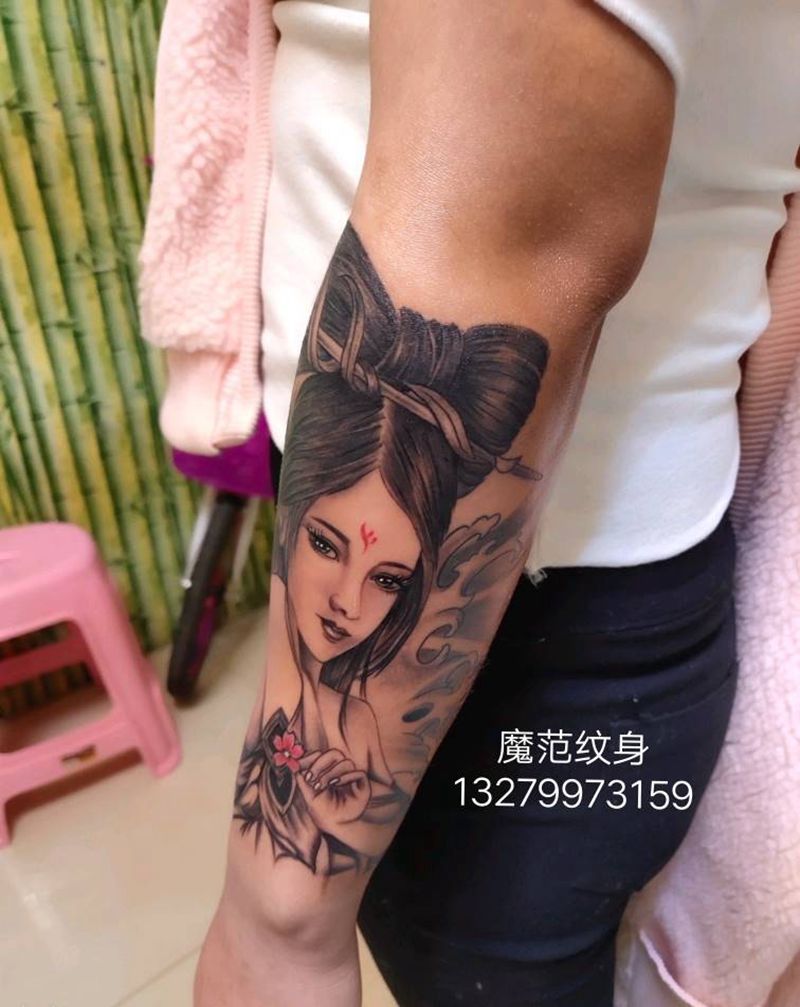当前位置: 首页 >新疆阿克苏地区纹身店-魔范纹身师工作室纹身图案>艺妓纹身图片_手臂新传统艺妓纹身图案