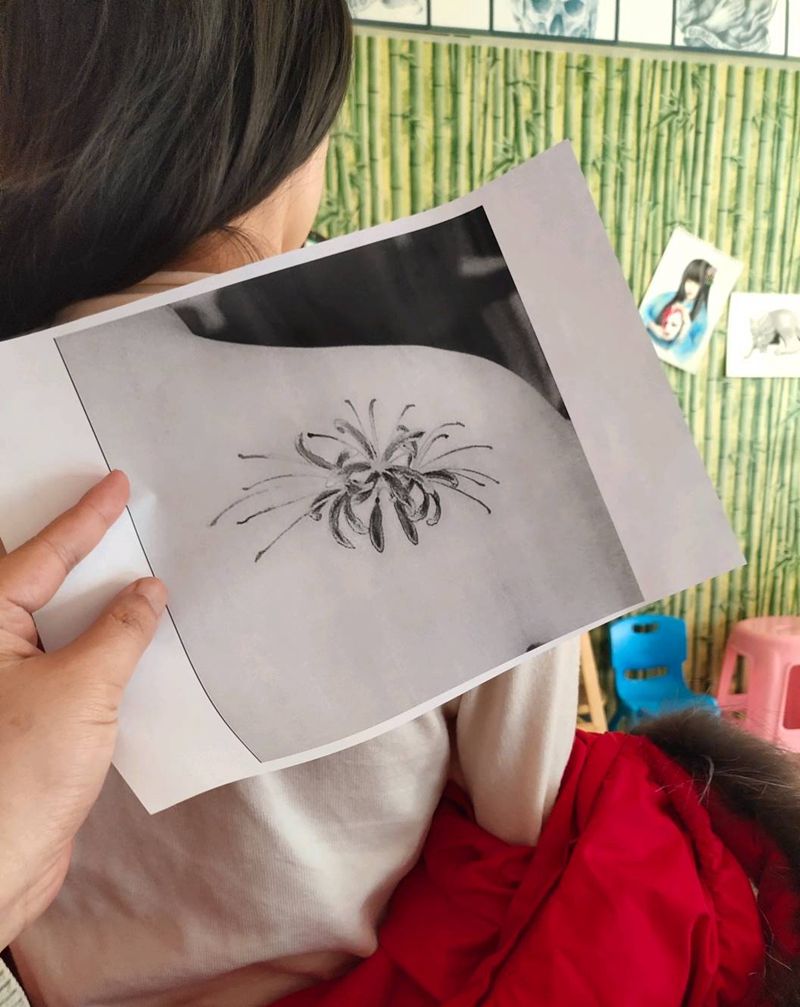 当前位置: 首页 >新疆阿克苏地区纹身店-魔范纹身师工作室纹身图案>彼岸花纹身图片_背部新传统彼岸花纹身图案