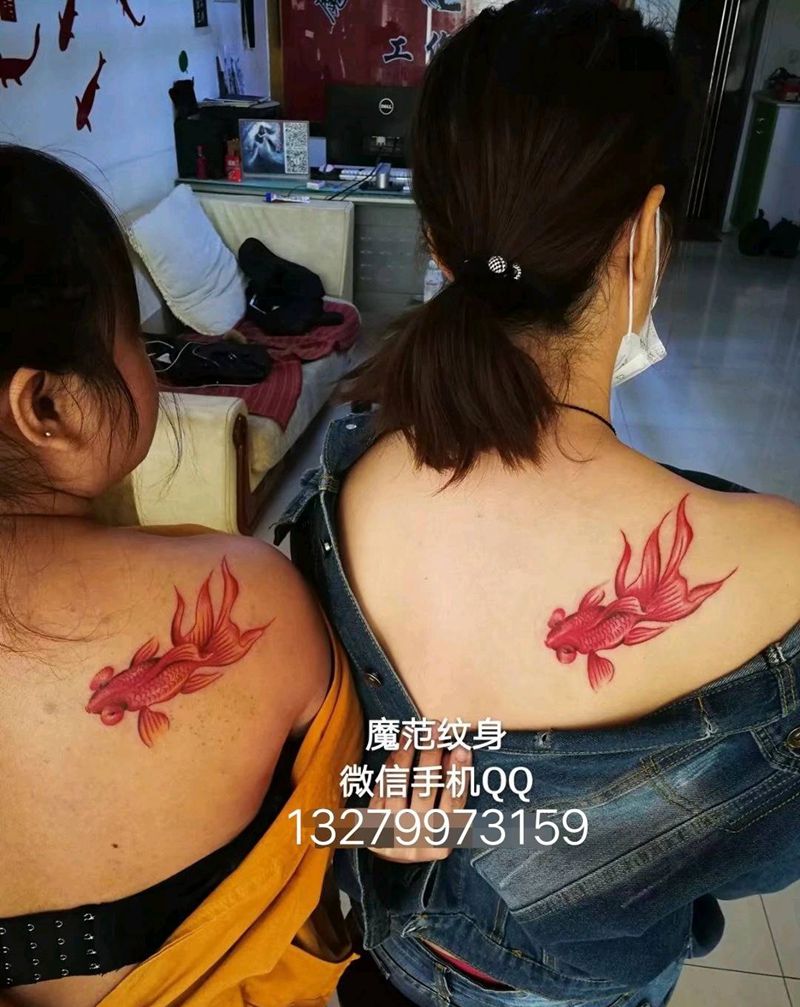 当前位置: 首页 >新疆阿克苏地区纹身店-魔范纹身师工作室纹身图案>金鱼纹身图片_肩部背部新传统水彩鱼纹身图案