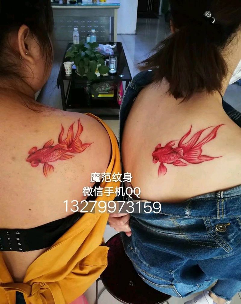 当前位置: 首页 >新疆阿克苏地区纹身店-魔范纹身师工作室纹身图案>金鱼纹身图片_肩部背部新传统水彩鱼纹身图案