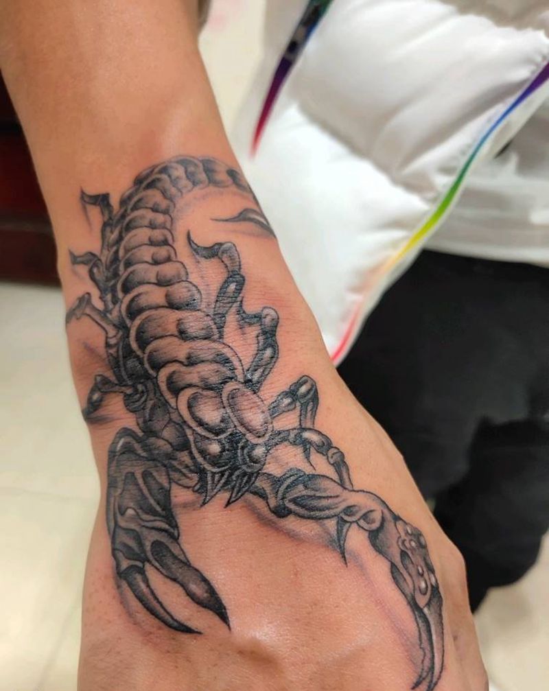 蝎子纹身图片_手部新传统蝎子纹身图案