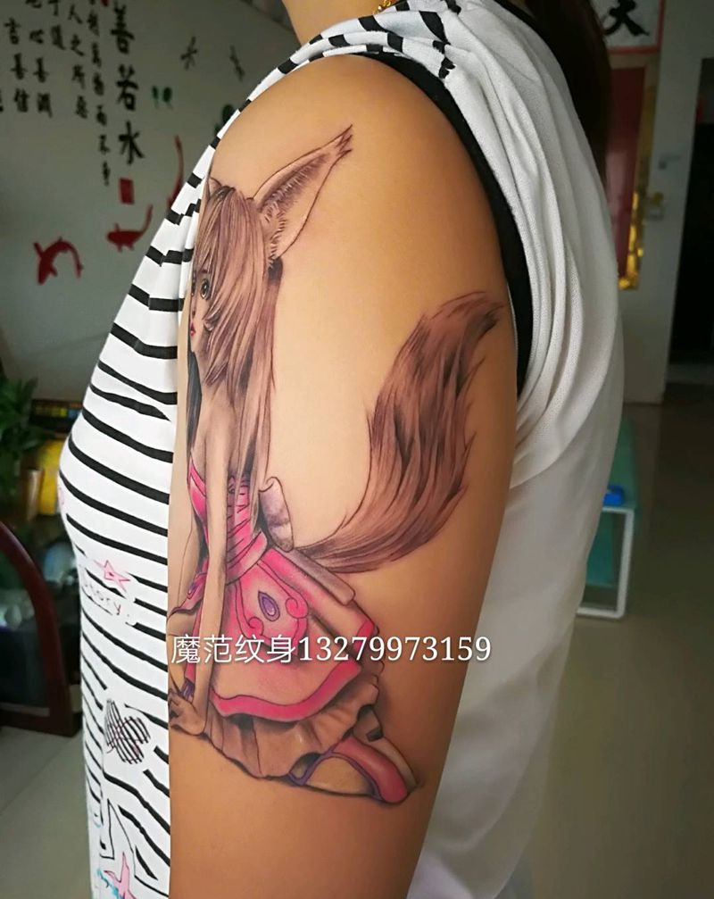 当前位置: 首页 >新疆阿克苏地区纹身店-魔范纹身师工作室纹身图案>阿狸纹身图片_肩部动物狐狸妲己成品纹身图案