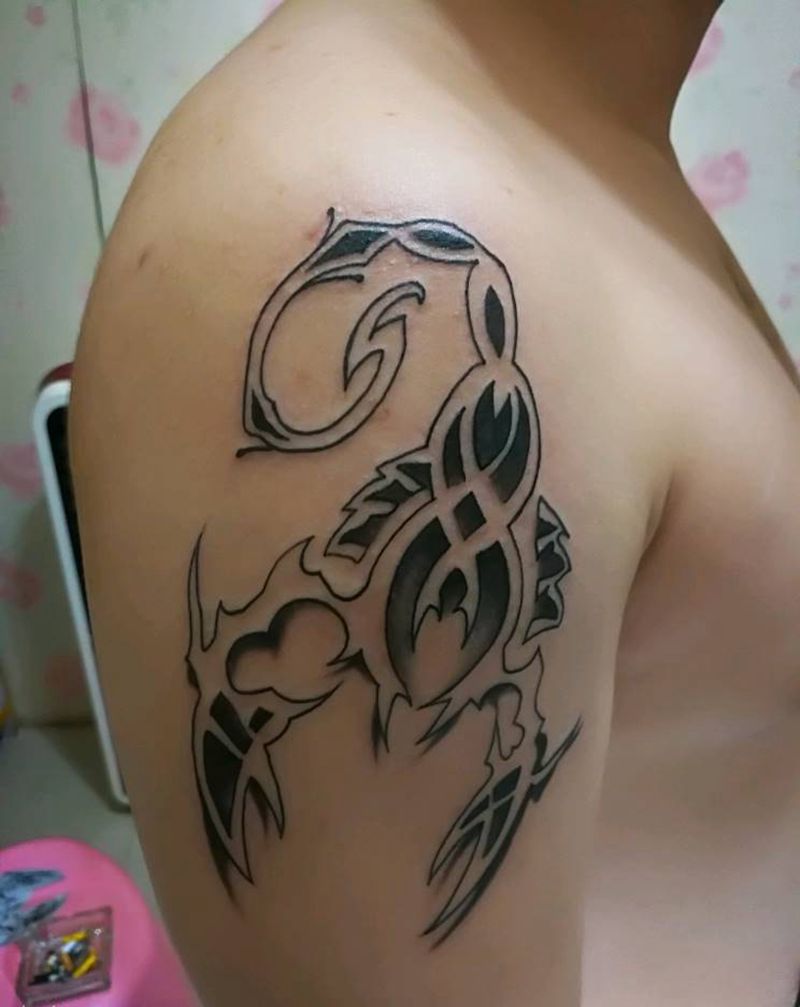 蝎子图腾纹身图片_肩部动物图腾成品纹身图案