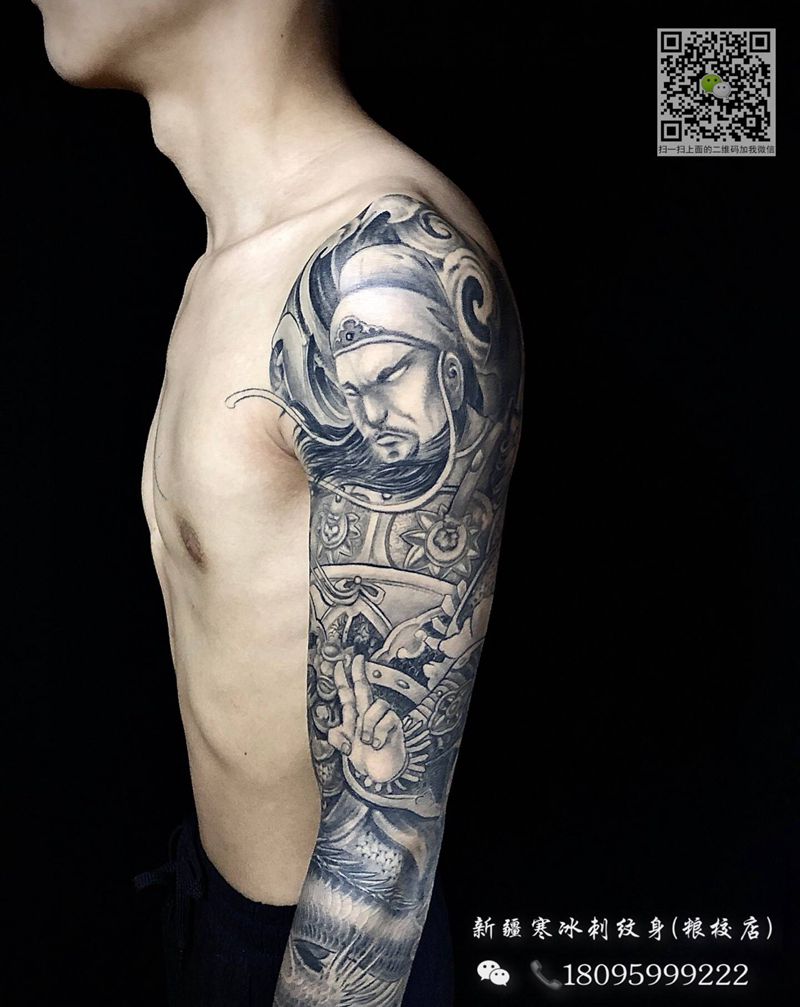 当前位置: 首页 >新疆乌鲁木齐市纹身店-新疆寒冰刺纹身(新市区粮校店)纹身图案>关公#关羽#关二爷纹身图片_手臂背部新传统欧美写实关公关羽关二爷纹身图案