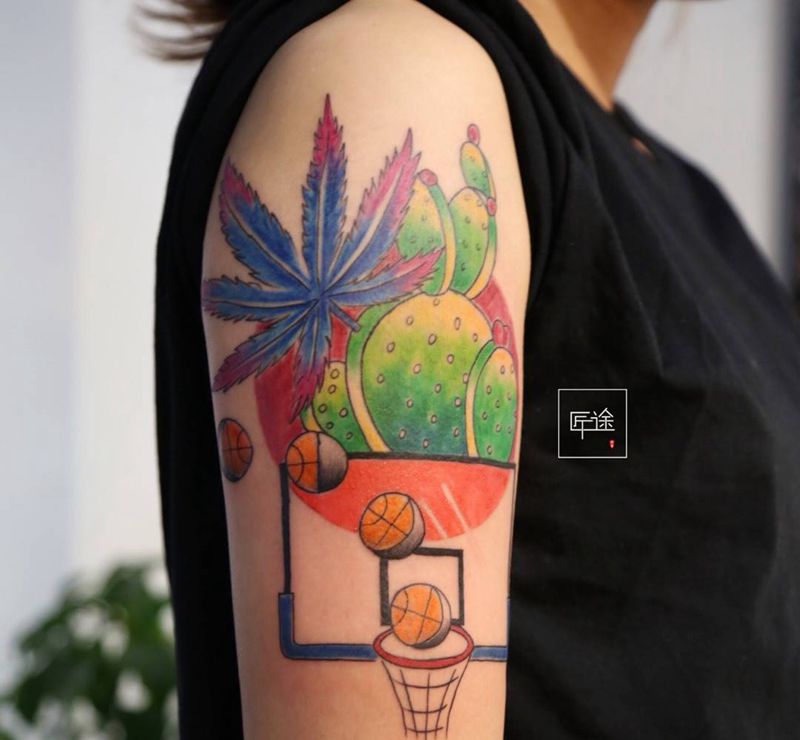 沙漠骆(lan)驼(qiu)纹身图片_New School树叶篮球仙人掌纹身图案