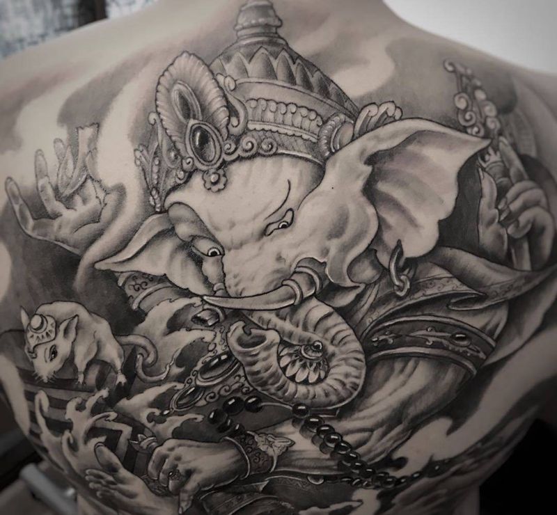 当前位置: 首页 >新疆昌吉自治州纹身店-匠途刺青设计工作室纹身图案>象神纹身图片_背部传统成品宗教纹身图案