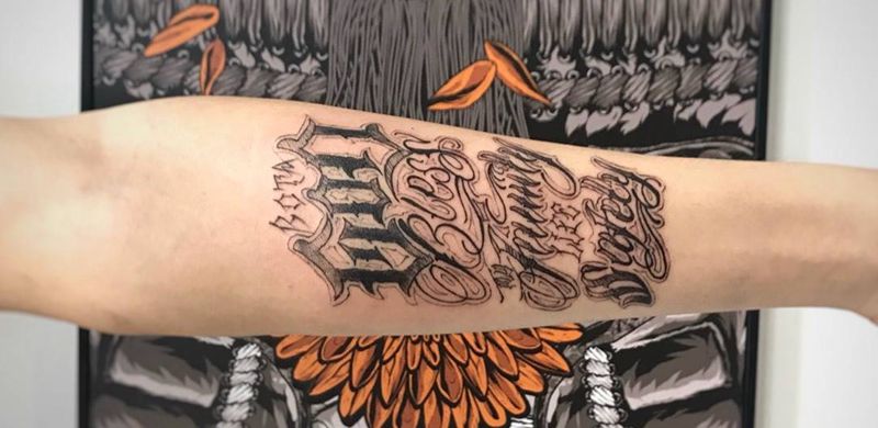 当前位置: 首页 >新疆昌吉自治州纹身店-匠途刺青设计工作室纹身图案>花体字纹身图片_成品手臂字符欧美纹身图案