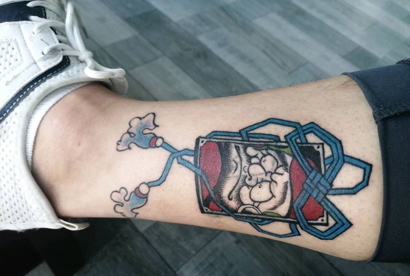• T包小腿吹火男+阿多福纹身图片_腿部老传统新传统吹火男阿