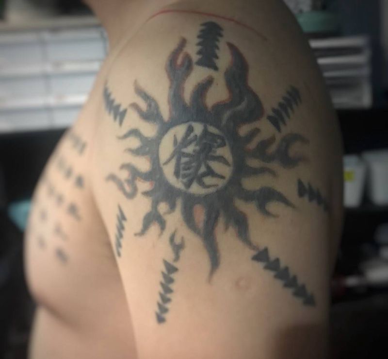 当前位置: 首页 >新疆昌吉自治州纹身店-匠途刺青设计工作室纹身图案>大臂外侧遮盖纹身图片_成品肩部手臂传统原创纹身图案