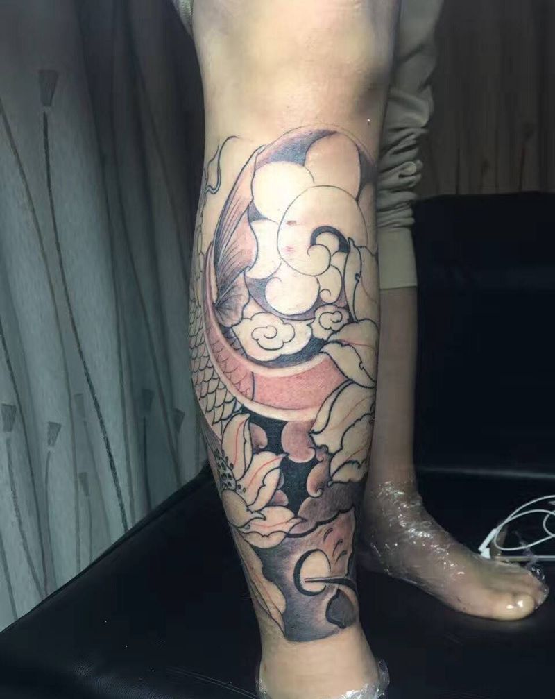 • T网红王老大花腿龙纹身图片_腿部新传统纹身图案