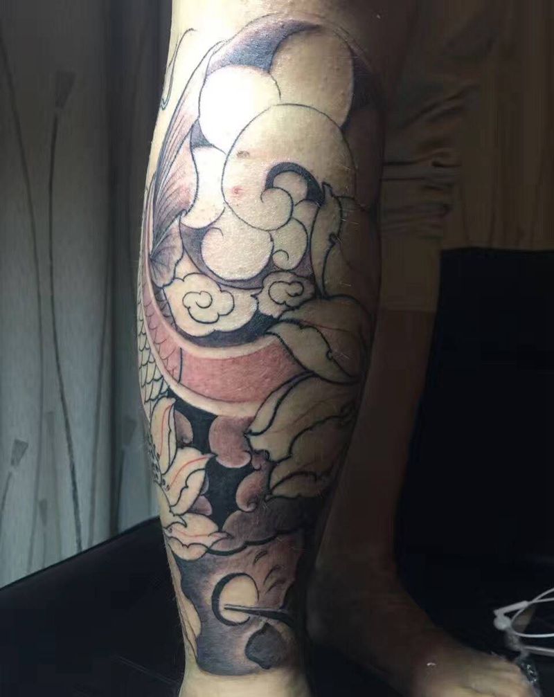 • T网红王老大花腿龙纹身图片_腿部新传统纹身图案