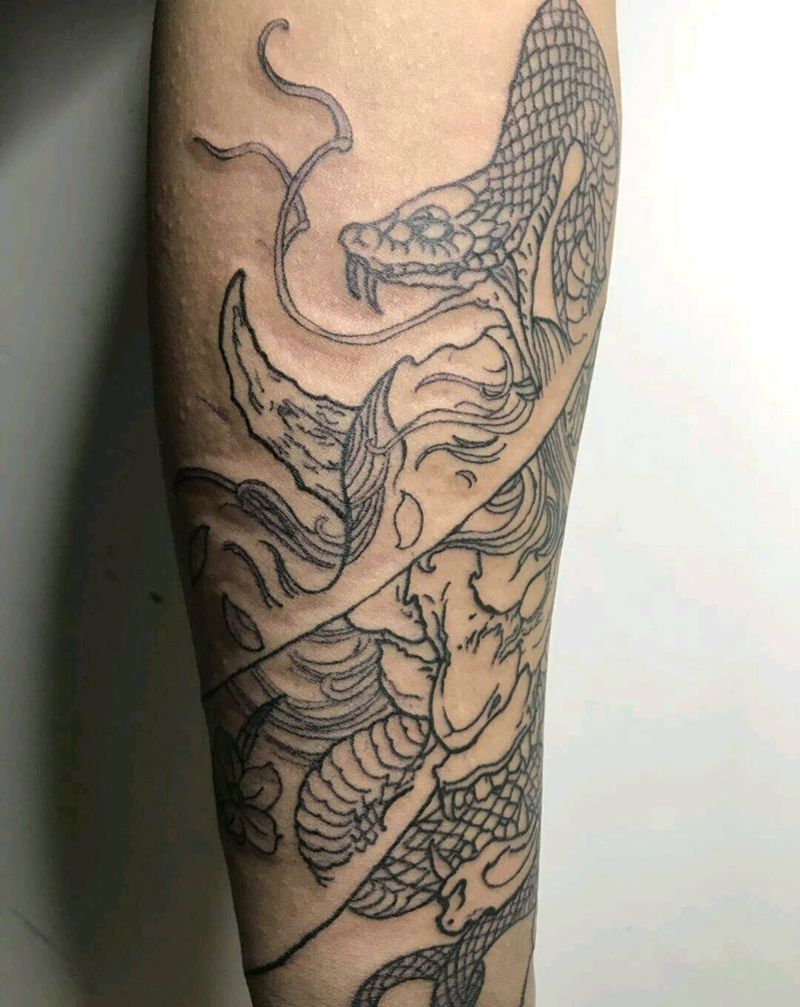 • T网红王老大花腿龙纹身图片_腿部新传统纹身图案