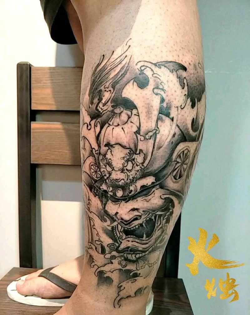 鬼武士纹身图片_腿部纹身图案