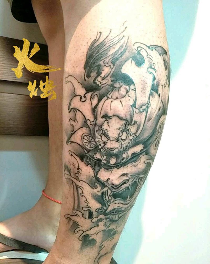 鬼武士纹身图片_腿部纹身图案