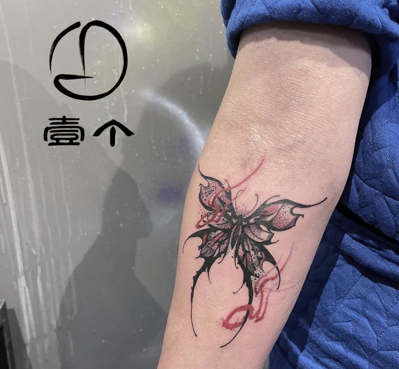 当前位置: 首页 >新疆伊犁哈萨克自治州纹身店-荼刺青墙绘工作室纹身图案>蝴蝶纹身图片_水彩点刺纹身图案