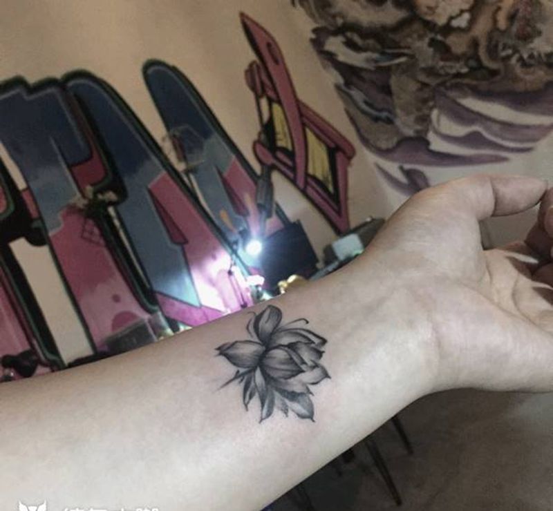 当前位置: 首页 >新疆伊犁哈萨克自治州纹身店-荼刺青墙绘工作室纹身图案>素荷花纹身图片_手臂清新植物纹身图案