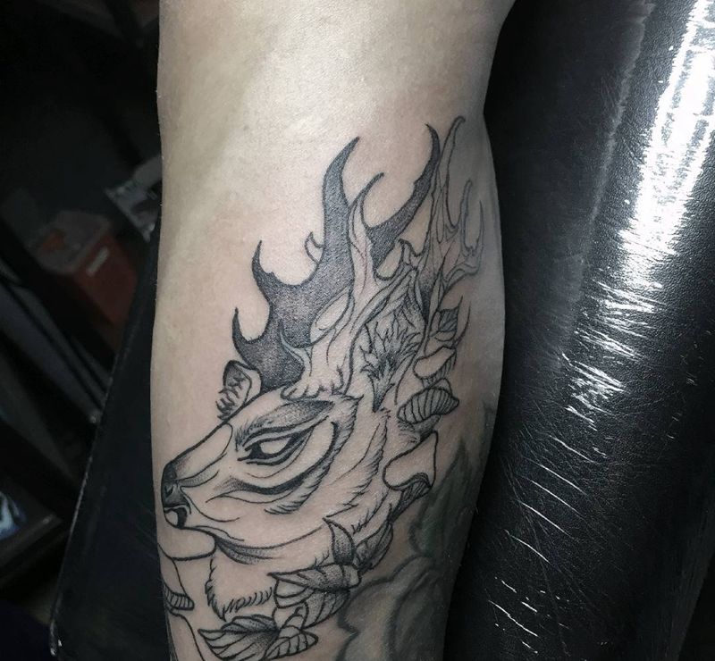 当前位置: 首页 >新疆伊犁哈萨克自治州纹身店-荼刺青墙绘工作室纹身图案>鹿纹身图片_手臂纹身图案