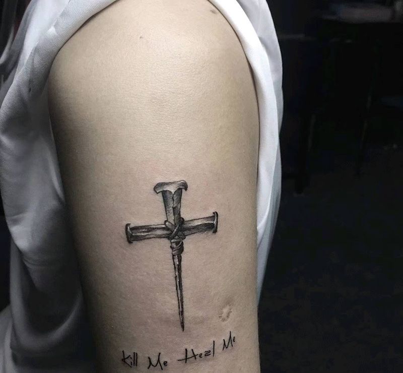 当前位置: 首页 >新疆伊犁哈萨克自治州纹身店-荼刺青墙绘工作室纹身图案>十字架纹身图片_手臂纹身图案