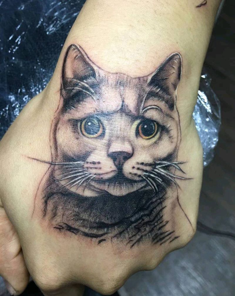 宠猫肖像写实纹身图片_手部肖像写实纹身图案