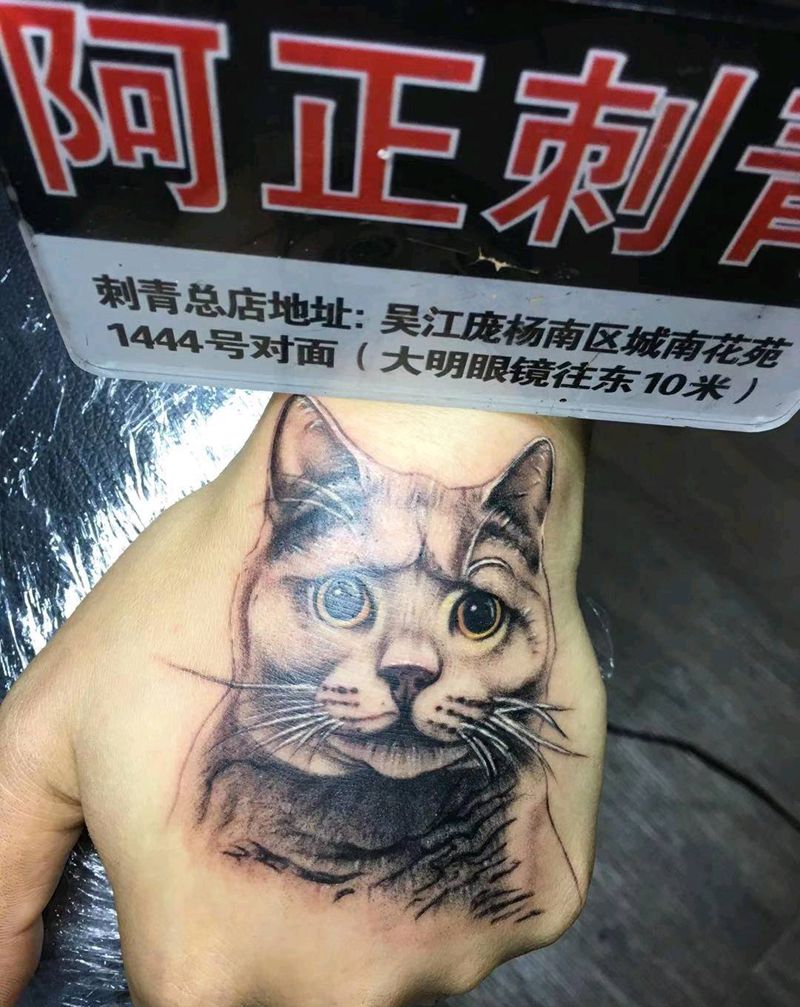 当前位置: 首页 >江苏省苏州市纹身店-阿正总店国际3D刺青店纹身图案>宠猫肖像写实纹身图片_手部肖像写实纹身图案