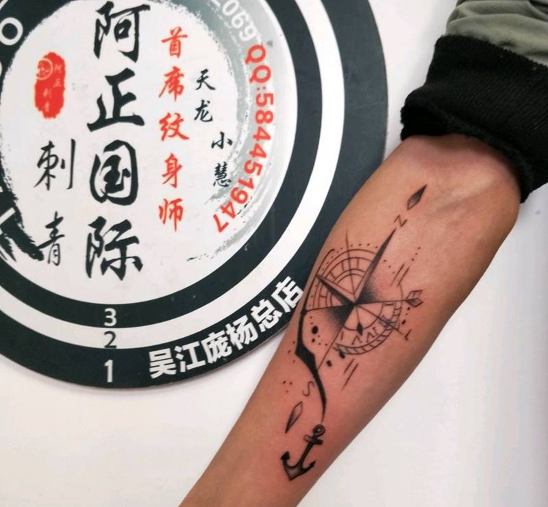 当前位置: 首页 >江苏省苏州市纹身店-阿正总店国际3D刺青店纹身图案>点刺指南针纹身图片_手臂纹身图案