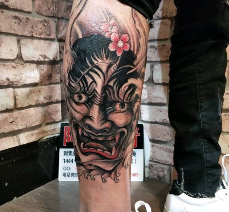 • T包小腿吹火男+阿多福纹身图片_腿部老传统新传统吹火男阿