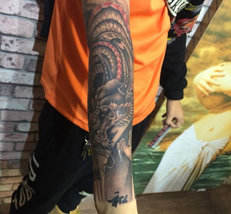 当前位置: 首页 >江苏省苏州市纹身店-阿正总店国际3D刺青店纹身图案>包小臂龙纹身图片