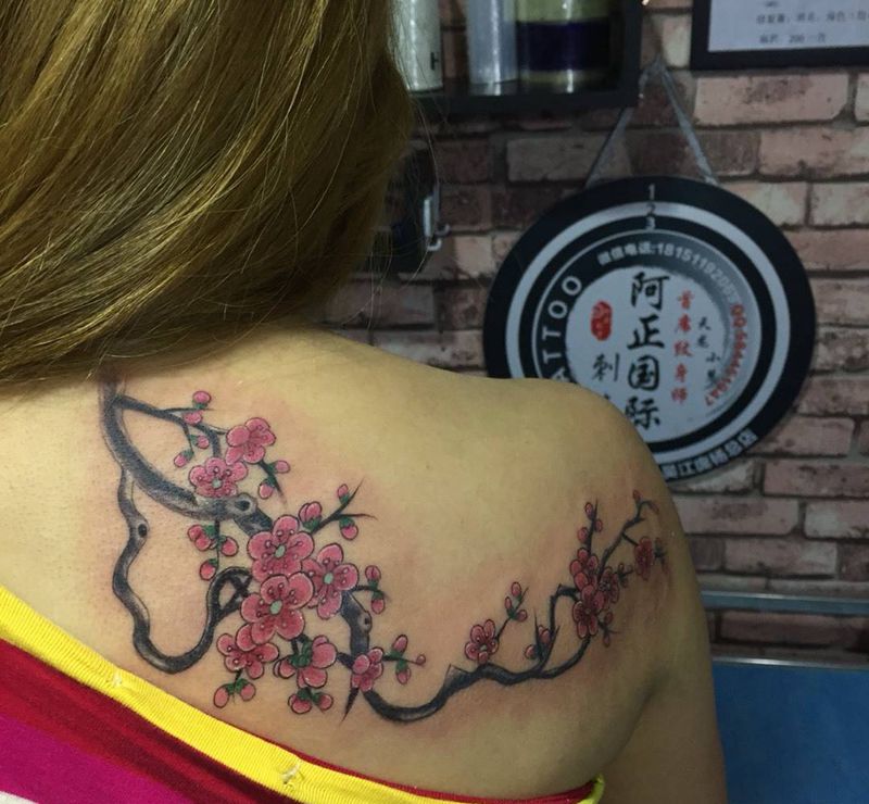 当前位置: 首页 >江苏省苏州市纹身店-阿正总店国际3D刺青店纹身图案>后肩梅花纹身图片