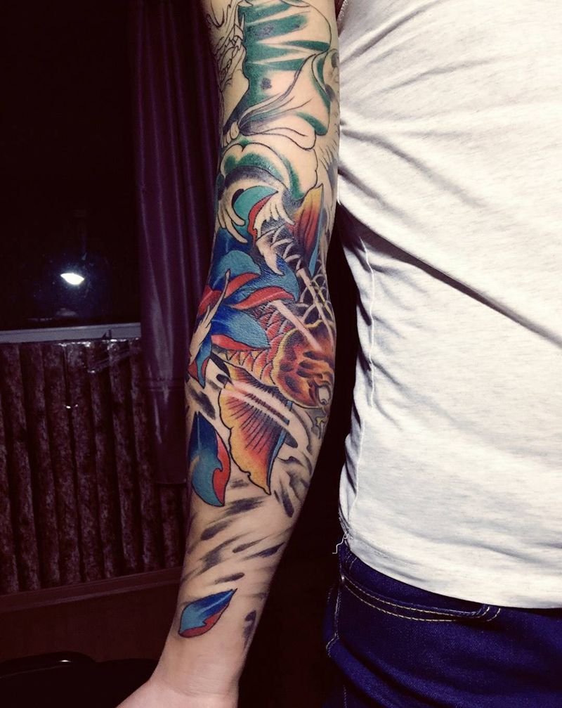 当前位置: 首页 >新疆直辖纹身店-陵鱼纹身工作室纹身图案>花臂 配色客人要求的纹身图片