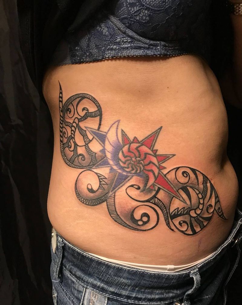 • 时尚性感的腹部莲花纹身图案